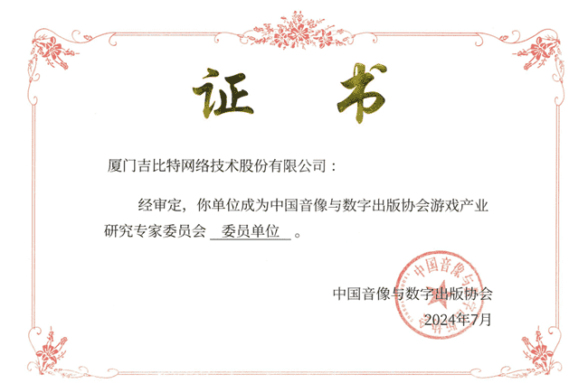 2024年7月25日,,中国音像与数字出版协会游戏产业研究专家委员会(以下简称“中国音数协游戏专委会”)成立大会在上海市召开,,厦门赏金大对决网络技术股份有限公司及其子公司深圳雷霆信息技术有限公司(以下统称“公司”)正式成为中国音数协游戏专委会委员单位。。。。