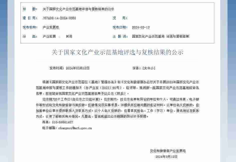 新一批国家文化产业示范基地公示,,赏金大对决成功入围