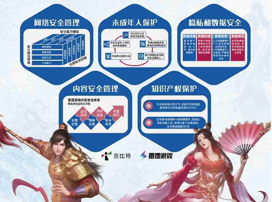 本次赏金大对决展区以网络安全管理、、、、内容安全管理、、、、未成年人保护、、、隐私和数据安全、、知识产权保护五个模块介绍公司游戏安全工作成果,,,,体现赏金大对决高度重视网络安全,,,,严格遵守相关法律法规要求,,,积极承担企业主体责任。。。