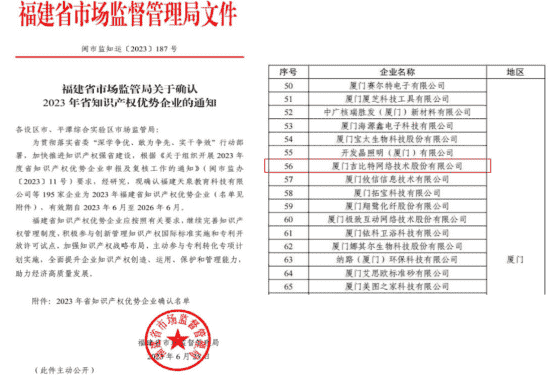近日,,,福建省市场监督管理局公示了2023年福建省知识产权优势企业名单,,,,厦门赏金大对决网络技术股份有限公司(以下简称“赏金大对决”或“公司”)榜上有名。。。