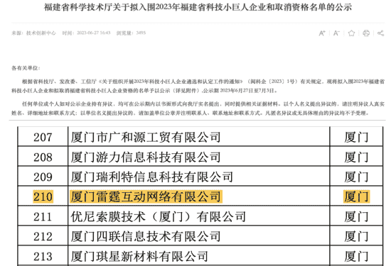 此次再次入选福建省科技小巨人企业既是对雷霆互动创新能力的认可,,,也是对市场发展潜力及综合实力的高度肯定。。。